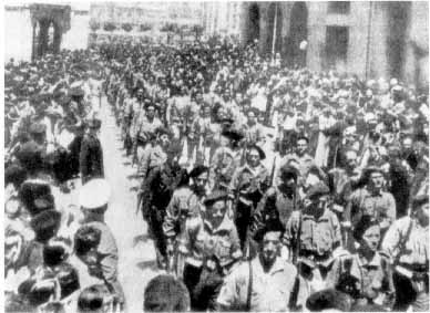 Desfile de requetés en Pamplona / Iruña en los primeros días de la rebelión militar