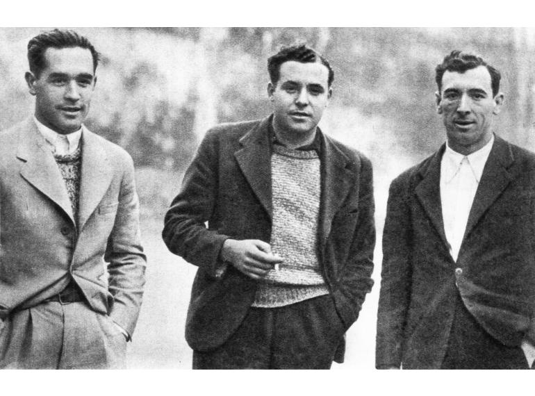 De izquierda a derecha: Pedro Areso, Urquiaga y Serafín Aedo, 1935.