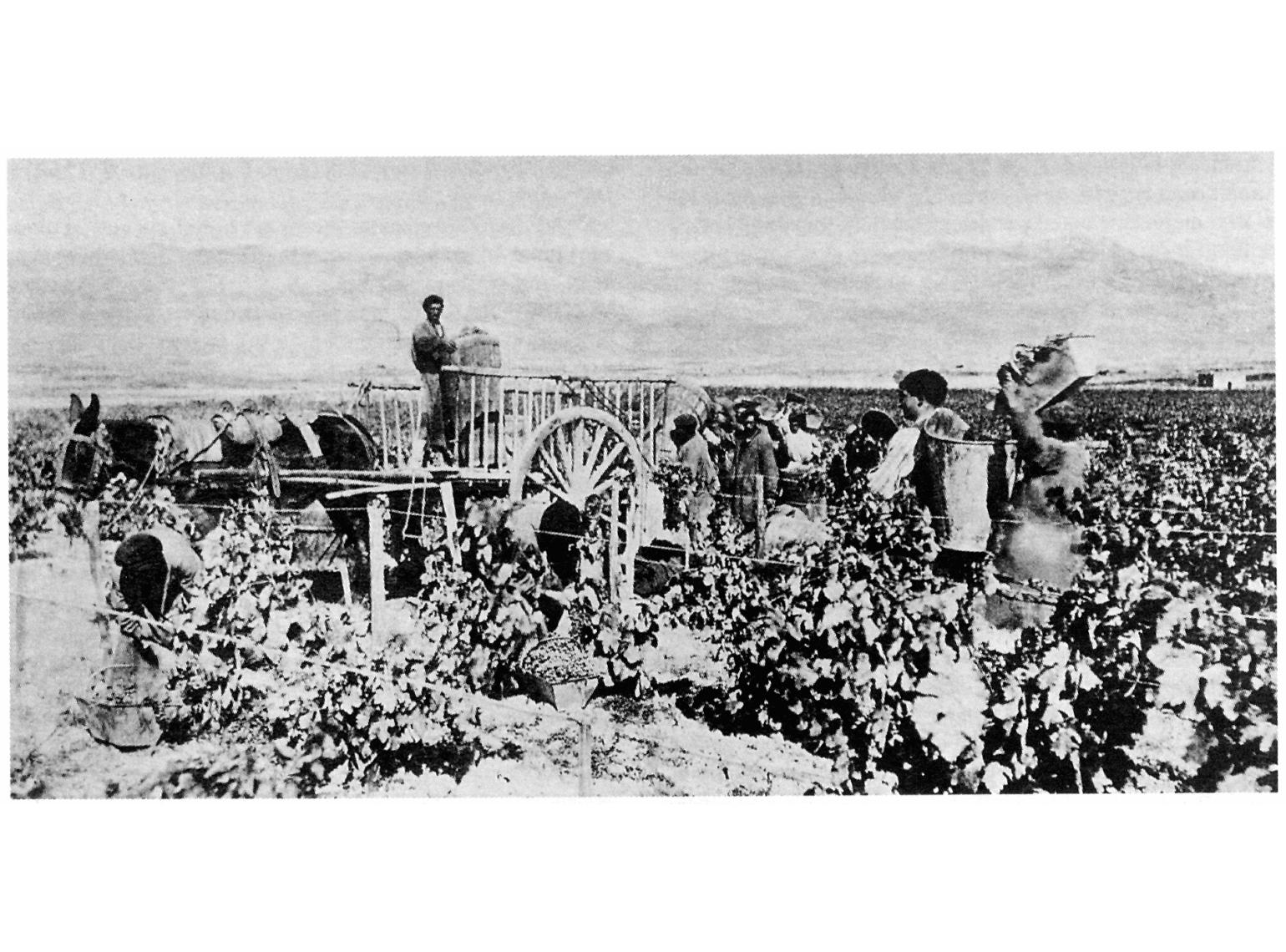 Vendimia en Elciego (Álava). Foto de hacia 1890