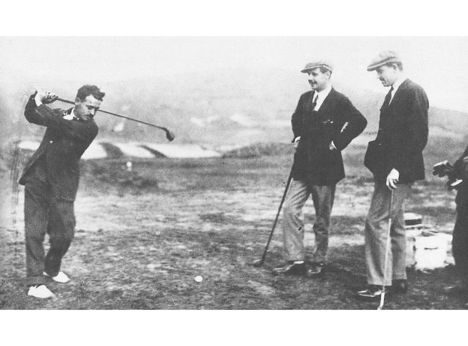 Real Golf Club de Zarautz (Gipuzkoa). Emilio Cayarga, Gonzalo Sanz, Duque de Lécera. Año 1921.