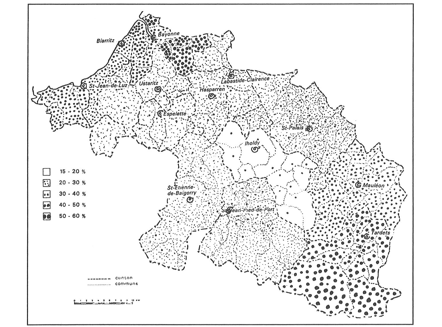 Posición de la izquierda en Iparralde en la segunda vuelta de las elecciones presidenciales de mayo de 1974. Ref. Pierre Bidart, Les élections présidentielles de mai 1974 au Pays Basque, "Bulletin du Musée Basque", n° 66 (1974).