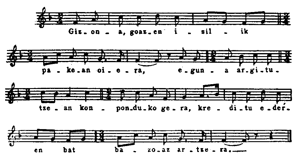 Partitura de la pieza Gizona, goazen isilik.