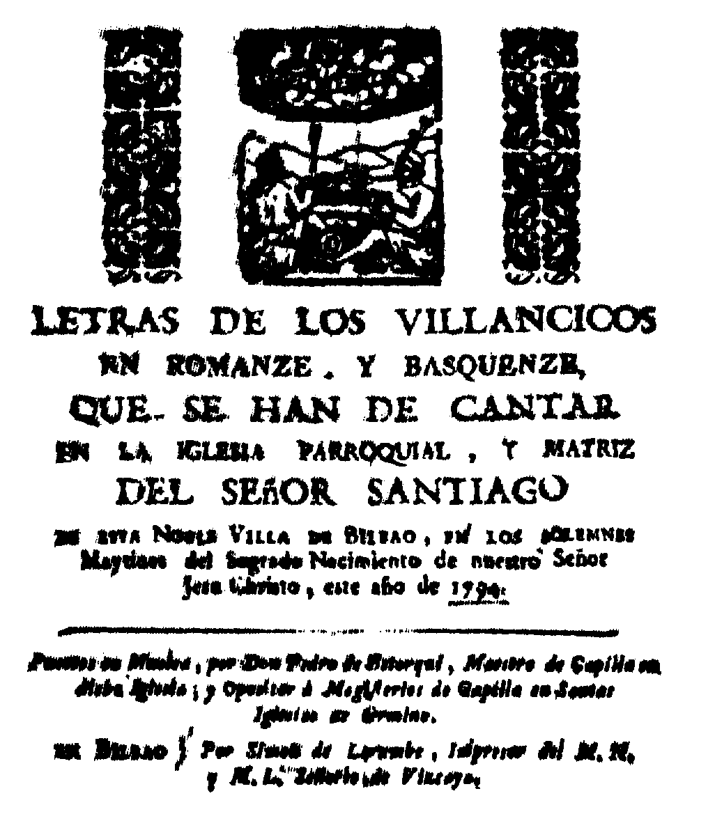 "Letras de los villancicos en romanze y basquenze, que se han de cantar en la iglesia parroquial y matriz del señor Santiago"
