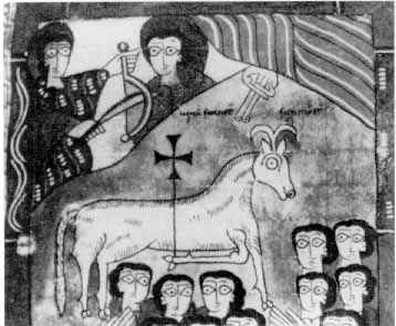 Música. Personaje tocando un monocordio. Miniatura del Beato de El Escorial, elaborado en el scriptorium de San Millán de la Cogolla (lLa Rioja) a finales del siglo X