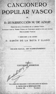 Cancionero Popular Vasco de D. Resurrección Mª de Azkue.