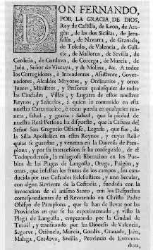 Navarra. Cédula de Fernando VI ordenando la salida de la cabeza de San Gregorio Ostiense hacia los lugares donde ha llegado la plaga de langosta. Documento fechado en Madrid el 14 de octubre de 1756.