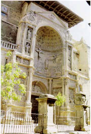 Navarra. Portada renacentista de la iglesia parroquial de Santa María de Viana. Fue trazada y empezada por Juan de Goyaz en 1549 con la colaboración de Juan de Orbara. Concluyó la obra en 1570. Fot. Garikoitz Estornés Zubizarreta, 1991