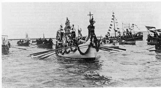 Procesión marítima de la Virgen del Carmen, en Santurtzi (Bizkaia). Julio de 1910