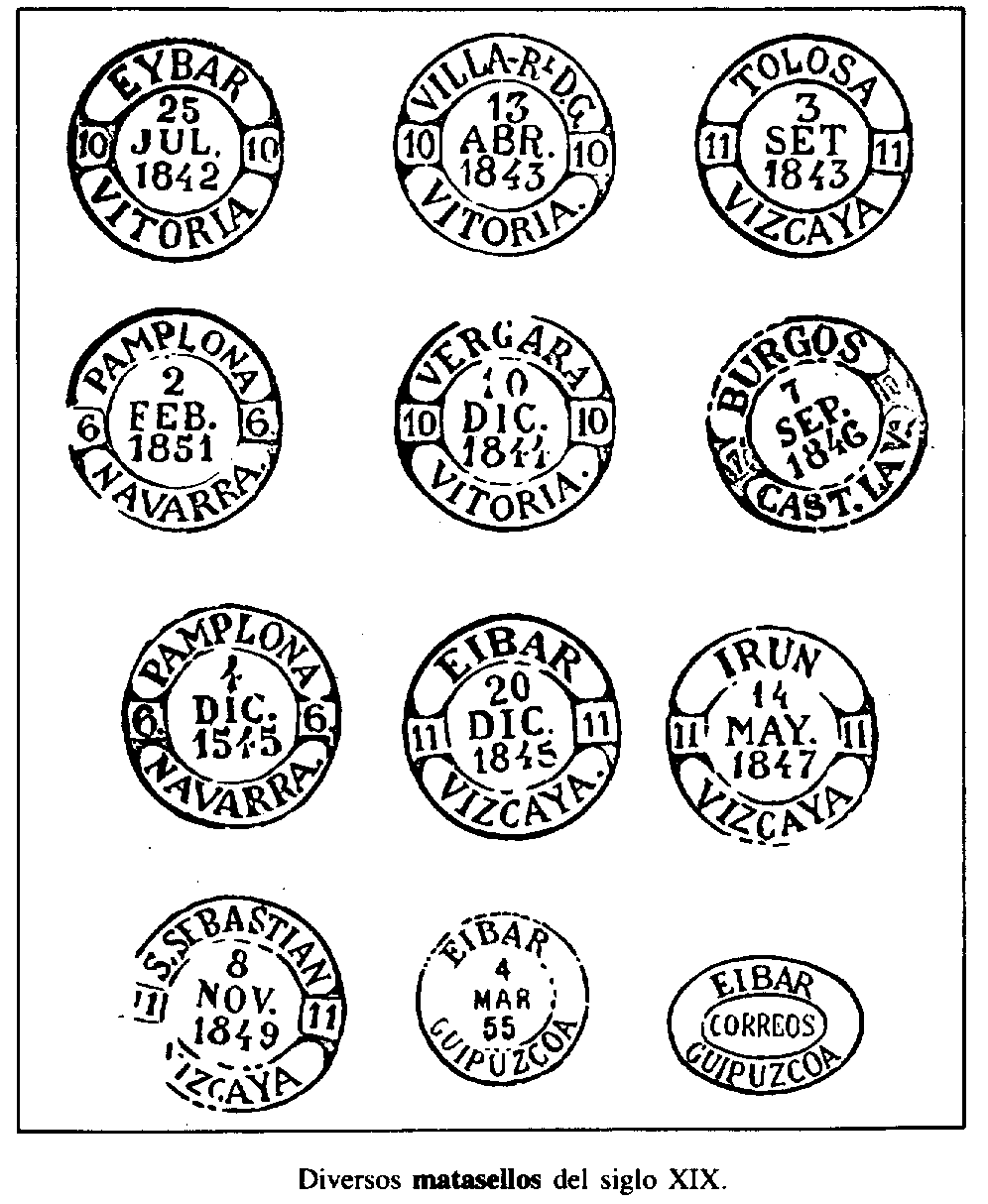 Diversos matasellos del siglo XIX