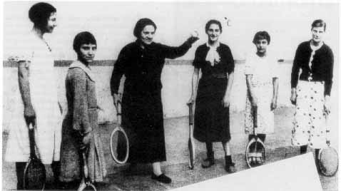 Pelota. La canchera Salomé enseñando a un grupo de raquetistas en el frontón Astelena de Eibar (Gipuzkoa). Abril de 1936