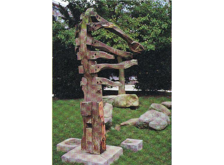 Vitoria-Gasteiz. Brisas de Mar, escultura de Josetxu Aguirre, en la plaza de Santa Barbara. Año 1980. Foto Garikoitz Estornés Zubizarreta, 1999.