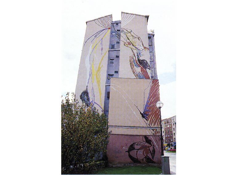 Vitoria-Gasteiz. Mural obra de Alvarez Vélez en una casa de la calle Portal de Arriaga. Año 1993. Foto Garikoitz Estornés Zubizarreta, 1999.