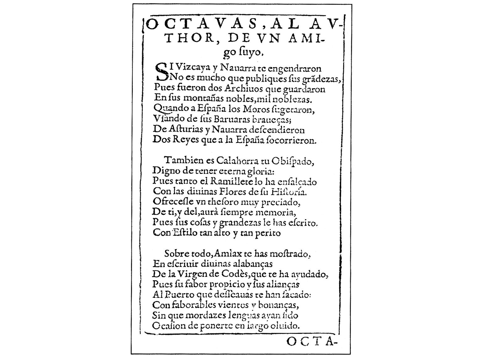 Vizcaya / Bizkaia. Versos dedicados a Juan de Amiax en el prólogo de su obra Ramillete de Nuestra Señora de Codés (Pamplona, 1608)
