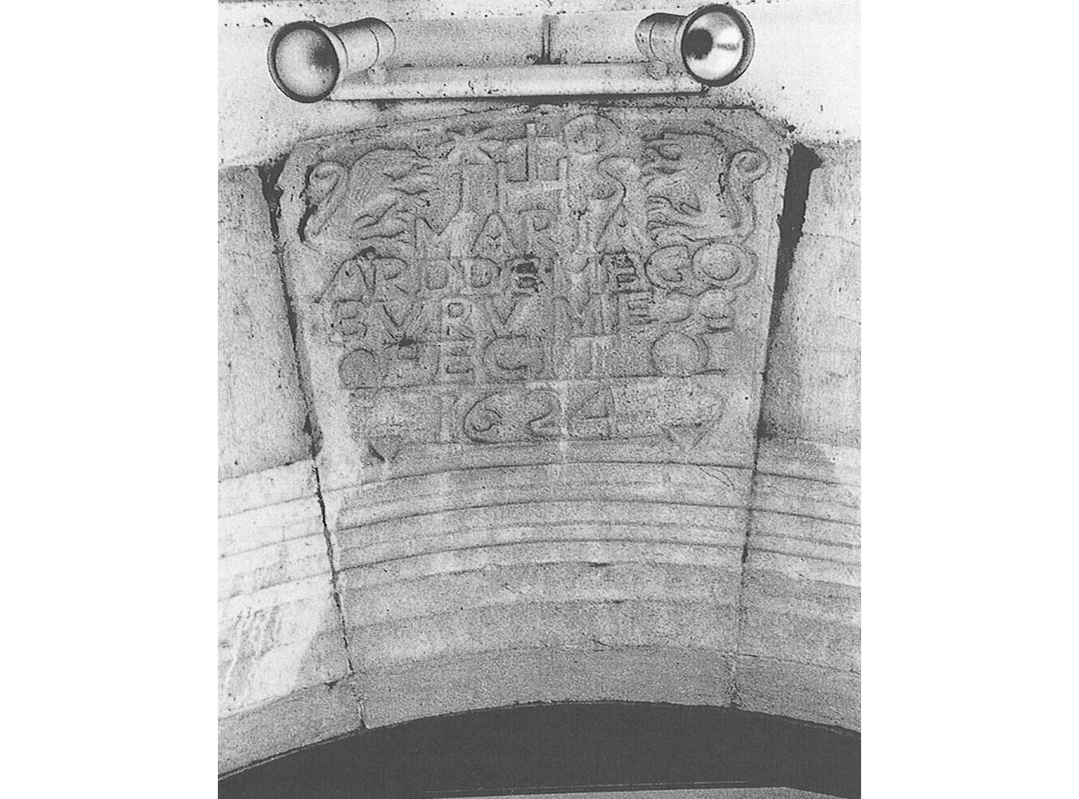Zuberoa. Clave de la puerta de una casa, decorada y fechada en 1624, en Atharratze. Fot. Pilar Rivera, 1997.