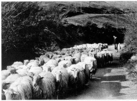Rebaño de ovejas lachas en Albaltzisketa (Gipuzkoa) Fot. Iñaki Linazasoro 1976