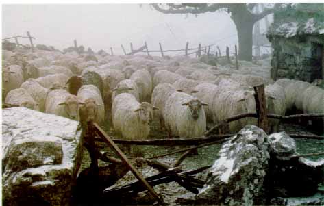 Ovejas en un redil de Aralar, bajo una fuerte nevada invernal, días antes de ser bajadas a Amezketa (Gipuzkoa) Fot. Garikoitz Estornés Zubizarreta