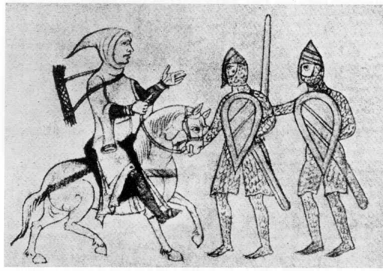 Francia. Ricardo Corazón de León es hecho prisionero. Miniatura del manuscrito de Ebulon, 1197. Biblioteca Municipal de Berna