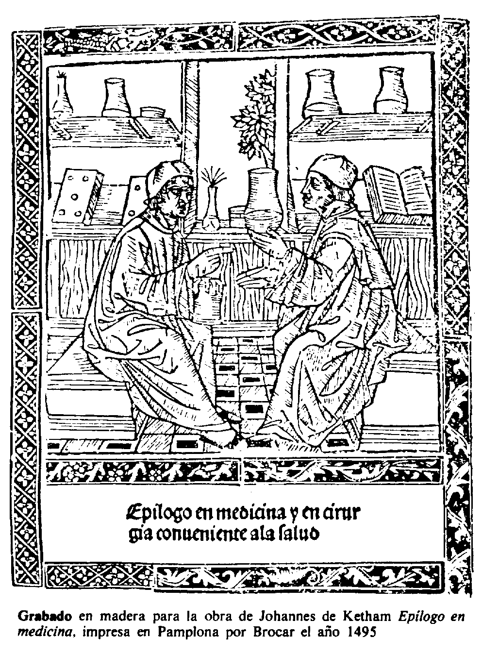 Grabado en madera para la obra de Johannes de Ketham Epílogo en medicina, impresa en Pamplona por Brocar el año 1495