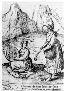 Música. Mujer de San Juan de Luz (Lapurdi) tocando el pandero. Grabado del siglo XVI