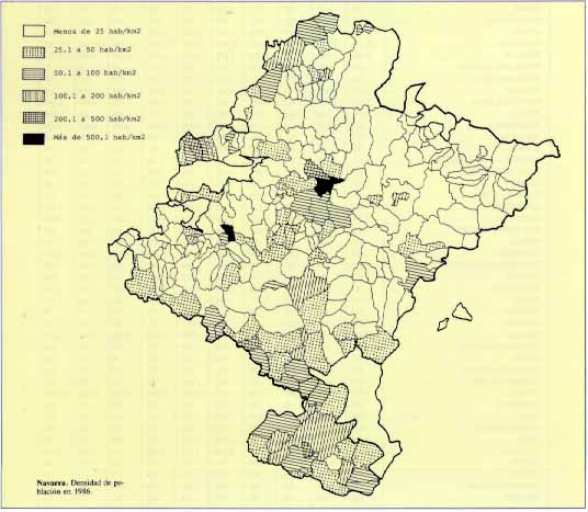 Navarra. Densidad de población en 1986.