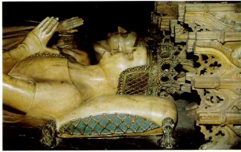 Catedral de Pamplona / Iruña. Sepulcro gótico, en alabastro, de Carlos III el Noble y Leonor de Trastámara, obra realizada en 1416 por el escultor Janín Lome de Tournay y sus colaboradores. En la foto la reina Leonor en primer término. Fot. Garikoitz Estornés Zubizarreta, 1991
