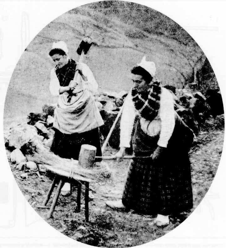 Batiendo el lino. Foto de principios del siglo XX