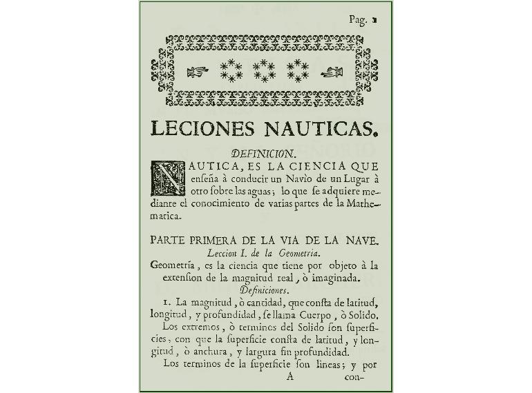 Página inicial de la obra de Miguel de Archer Lecciones Náuticas, 1756.