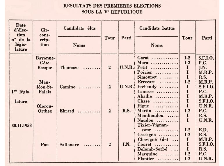 Resultados de las primeras Elecciones de la Vª República