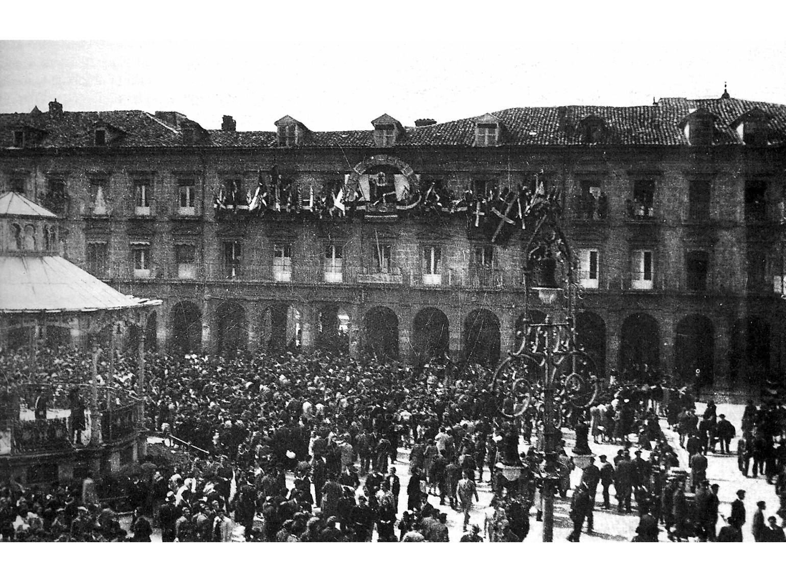 Vitoria-Gasteiz. Concentración nacionalista en la Plaza Nueva, ante el Batzoki, con motivo de la celebración del Aberri Eguna. Año 1934.