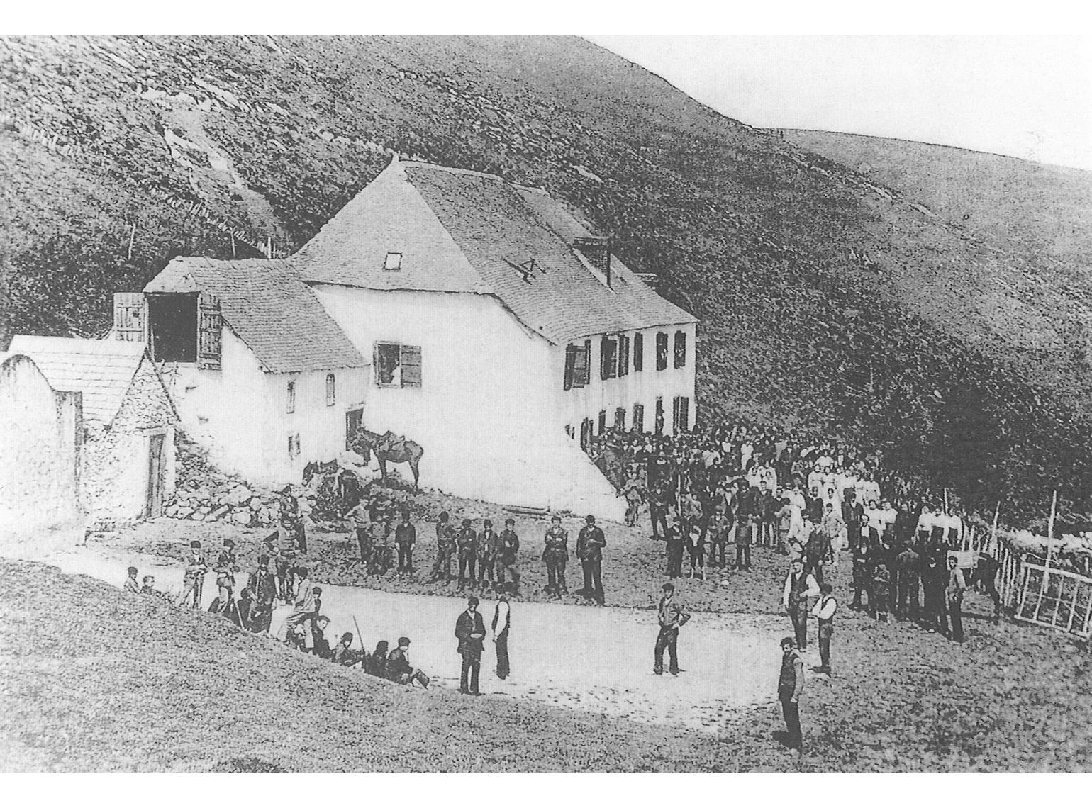 Zuberoa. Hotel Bellevue, en Ahuski (Altzürukü), construido para aprovechar las aguas medicinales de la fuente que mana de la ladera norte del monte Bohorkortia (1.214 m.). En 1852-53 la Comisión Sindical de Zuberoa autorizó su instalación, manteniéndose en funcionamiento hasta 1959, regentado desde 1905 por la familia Baratzabal.