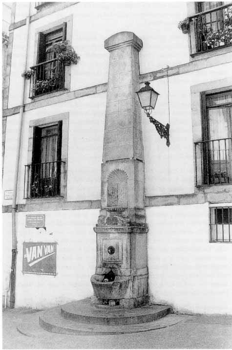 Donostia-San Sebastián. Fuente de la plazuela de San Telmo, adosada a la casa de Mendizábal, una de las salvadas del incendio de 1813. Al parecer esta fuente está construida sobre uno de los pozos antiguos de la población. Fot. Garikoitz Estornés Zubizarreta 1996