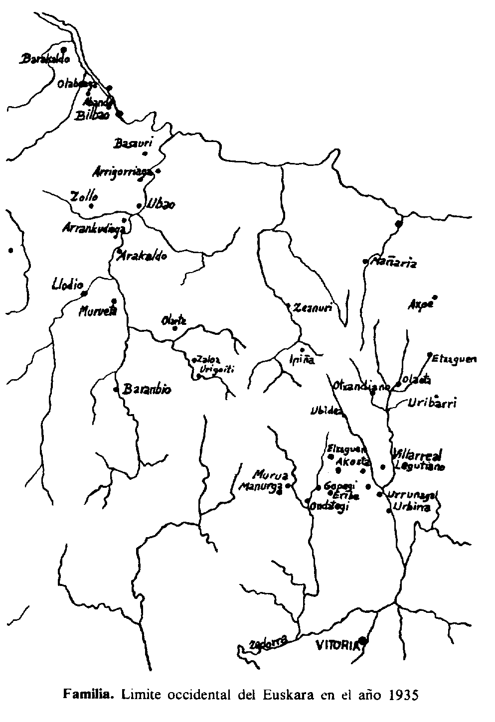 Familia. Límite occidental del Euskera en el año 1935