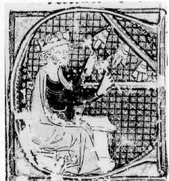 Música. David tañendo campanas con martillos. miniatura del Breviario de Pamplona, fechado en 1332