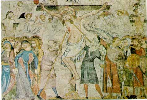 Navarra. Detalle de la pintura mural gótica del refectorio de la catedral de Pamplona / Iruña. Realizada por Juan Oliver en 1330. Conservada en el Museo de Navarra.