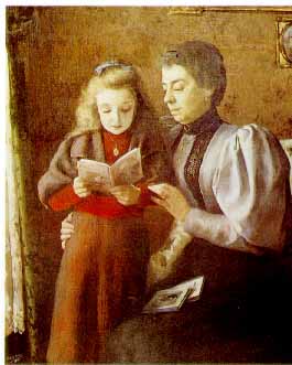 Navarra. Ayudando a la lectura, óleo obra de Nicolás Esparza Pérez en 1896. Museo de Navarra.