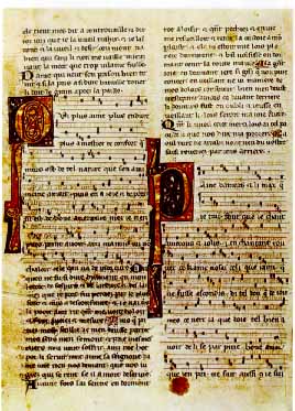 Navarra. Canción Qui plus aime plus endure del rey de Navarra Teobaldo I. Primera mitad del siglo XIII. Folio del manuscrito 5.198 del Arsenal, París.