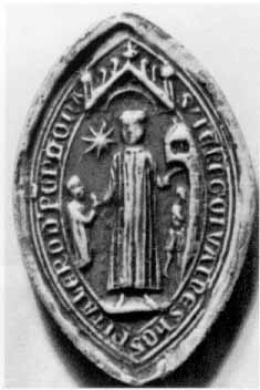 Sello del Hospitalero de Pamplona. Ref. J. y M. Larráyoz, Historia de la cultura y del arte de Pamplona.