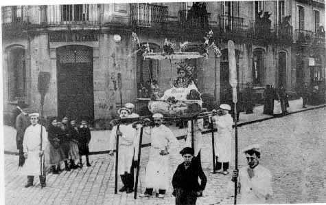 Grupo de panaderos de la cabalgata del carnaval de San Sebastián del año 1900