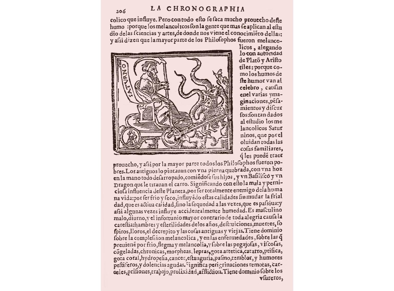 Los principales planetas vistos por Francisco Tornamira en su Cronographia (1585). Saturno
