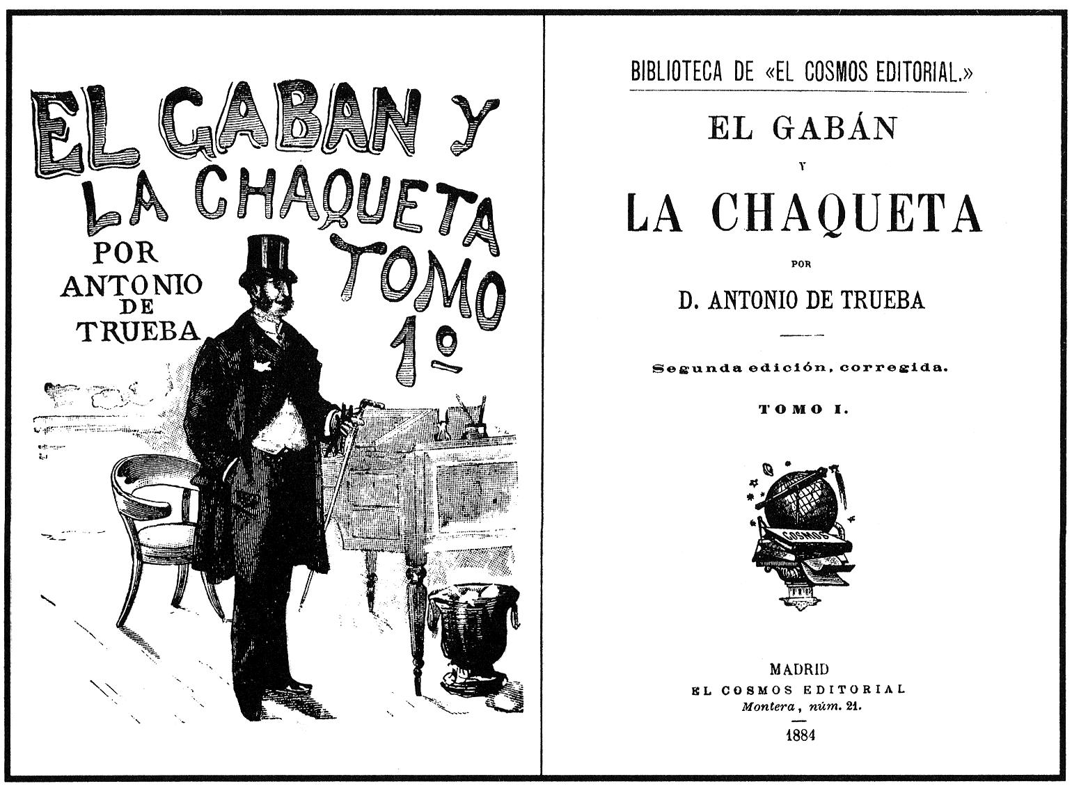 Vizcaya / Bizkaia. Tercera edición de El gabán y la chaqueta (Madrid, 1884) obra de Antonio de Trueba y de la Quintana. Las dos primeras fueron: Bilbao, 1872 y México, 1874