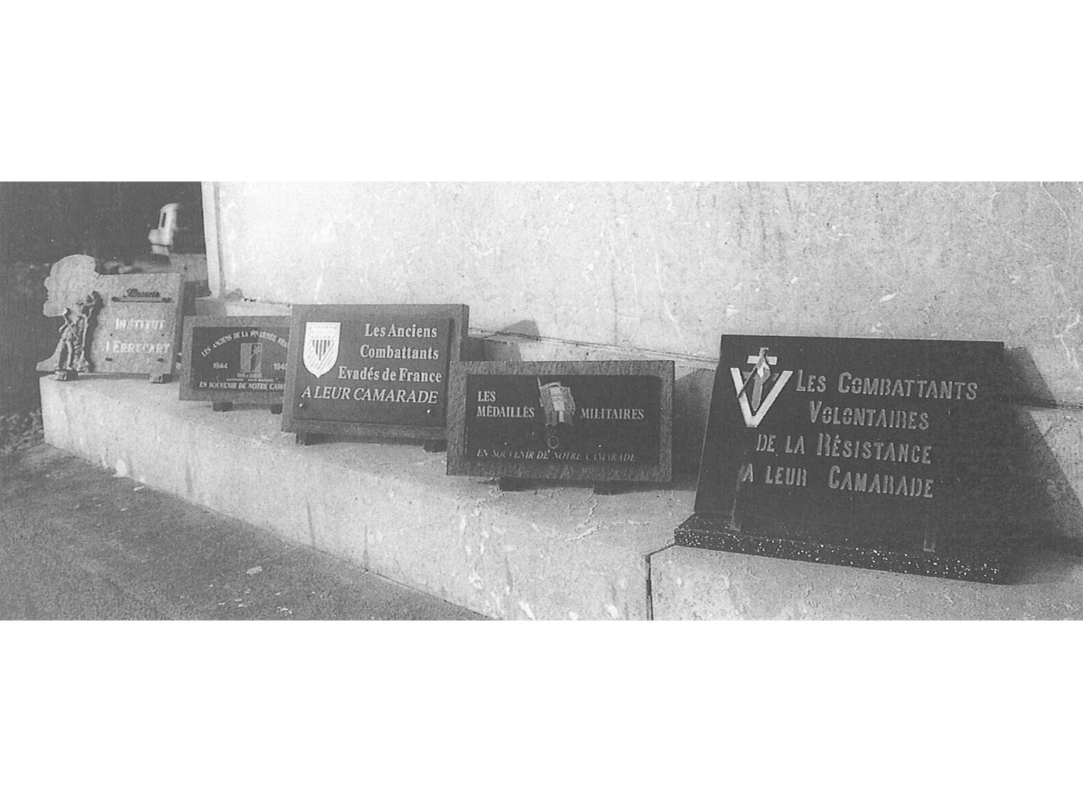 Zuberoa. Placas dedicadas por diferentes organizaciones relacionadas con la resistencia a J. L. Etchegaray, en el cementerio de Domintxaine (Domezain). Fot. Ainhoa Arozamena Ayala, 2003.