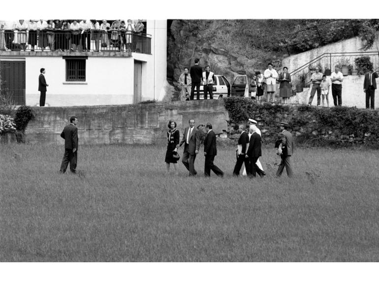 Don José Miguel de Barandiarán en el claustro de la universidad de Oñati
