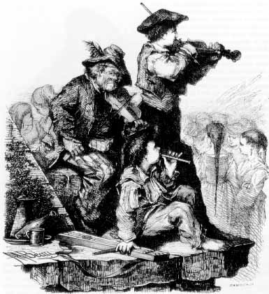 Música. Familia de músicos populares, según dibujo hecho del natural en Hondarribia (Gipuzkoa) por Alfred Beau en 1877