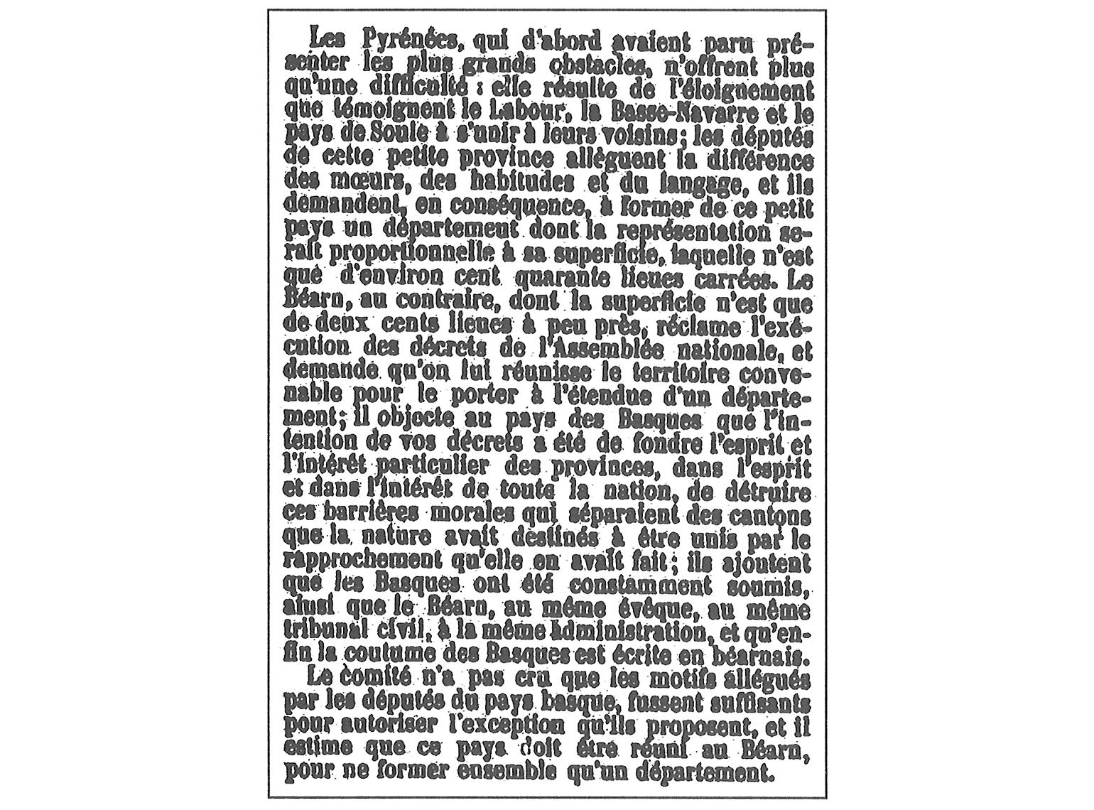 Zuberoa. Fragmento alusivo a Iparralde de la relación sumaria sobre la nueva división del reino, leída en la Asamblea Nacional Francesa por Bureaux de Pusy, en la sesión del 8 de enero de 1790.