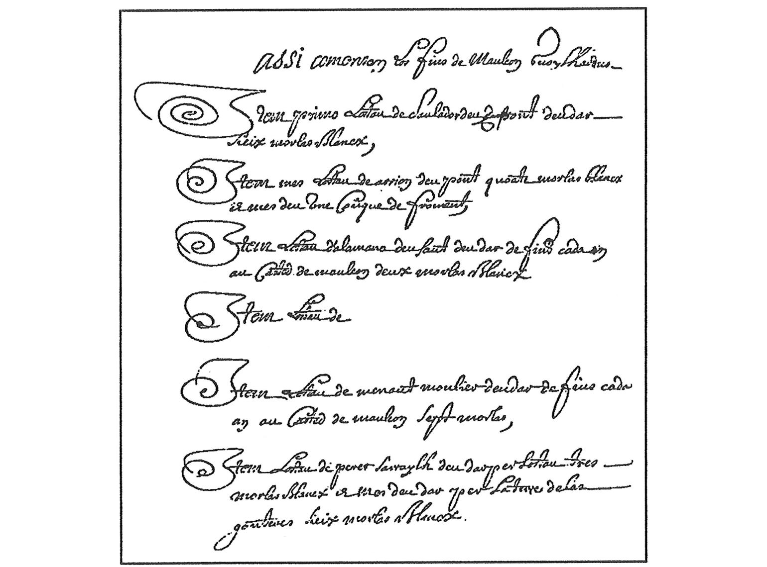 Fragmento de la copia realizada en 1690 del conocido como Censo Gótico de Zuberoa, mandado redactar, según Jaurgain, en 1377. Ref. Ricardo Cierbide, Le Censier gothique de Solde.